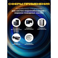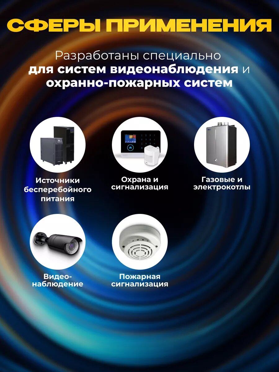 источники бесперебойного питания, источники резервного питания, кассовые аппараты и оборудование, кассы, компьютеры, системы аварийного освещения, системы видеонаблюдения, охранная и пожарная сигнализация, системы связи и мини-АТС, электропастухи, эхолоты, фонари, весы, инкубаторы, осветительное оборудование, солнечные панели и батареи, опрыскиватели, переносные приборы