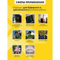 источники бесперебойного питания, источники резервного питания, кассовые аппараты и оборудование, кассы, медицинское оборудование, компьютеры, газовые и электрокотлы, котлы отопления, системы аварийного освещения, системы видеонаблюдения, охранная и пожарная сигнализация, системы связи и мини-АТС, электропастухи, эхолоты, насосы, детские электромобили, машины, мотоциклы, квадроциклы, радиоуправляемые машинки, инвалидные коляски, фонари, весы, инкубаторы, осветительное оборудование, солнечные панели и батареи, опрыскиватели, переносные приборы