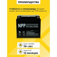 Аккумулятор для ибп NPP AGM 12v 40ah – устройство, предназначенное для обеспечения стабильного электропитания при отключении основного источника энергии. Бесперебойник для дома, компьютера играет важную роль в защите оборудования от потерь данных и повреждений, вызванных внезапными сбоями электроснабжения. Одним из лидеров на рынке стационарных аккумуляторов 12 вольт является серия NPP, гарантирующая надежность и эффективность в работе источников бесперебойного питания. В аккумуляторе AGM 12В электролит абсорбирован в стекловолоконном сепараторе, что обеспечивает герметичность, устойчивость к вибрациям и низкое электрическое сопротивление. Они отличаются высокой стойкостью к глубокому разряду, большим количеством циклов перезаряда, прочным корпусом. Аккумуляторы для детской машины, мотоцикла, электромобиля являются безопасными для человека и окружающей среды, поскольку не выделяют вредных паров и не подвержены вытеканию электролита. Еще одно преимущество аккумуляторов для машинки на радиоуправлении – их можно монтировать в произвольном положении под наклоном, даже в перевернутом состоянии. Аккумуляторы для бесперебойника не требуют обслуживания, рекомендованы для использования как в буферном, так и циклическом режимах. Акб для источников резервного питания являются универсальными: медицинское, торговое оборудование, пк, компьютеры, газовые и электро котлы отопления, аварийное освещение, системы видеонаблюдения, охранная пожарная сигнализация, извещатель, телекоммуникации, связь, промышленные установки, насосы, детские машинки, скутеры, квадроциклы, электромашины, игрушки для ребенка, инвалидные коляски, опрыскиватели садовые умница, осветительные и переносные приборы, солнечные панели и батареи. Регулярно проверяйте состояние и уровень заряда акб для ибп. В нашем магазине можно приобрести подходящее зарядное устройство. Перед покупкой уточните рабочие параметры ранее установленной свинцово-кислотной батареи.