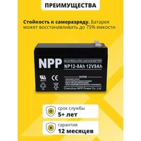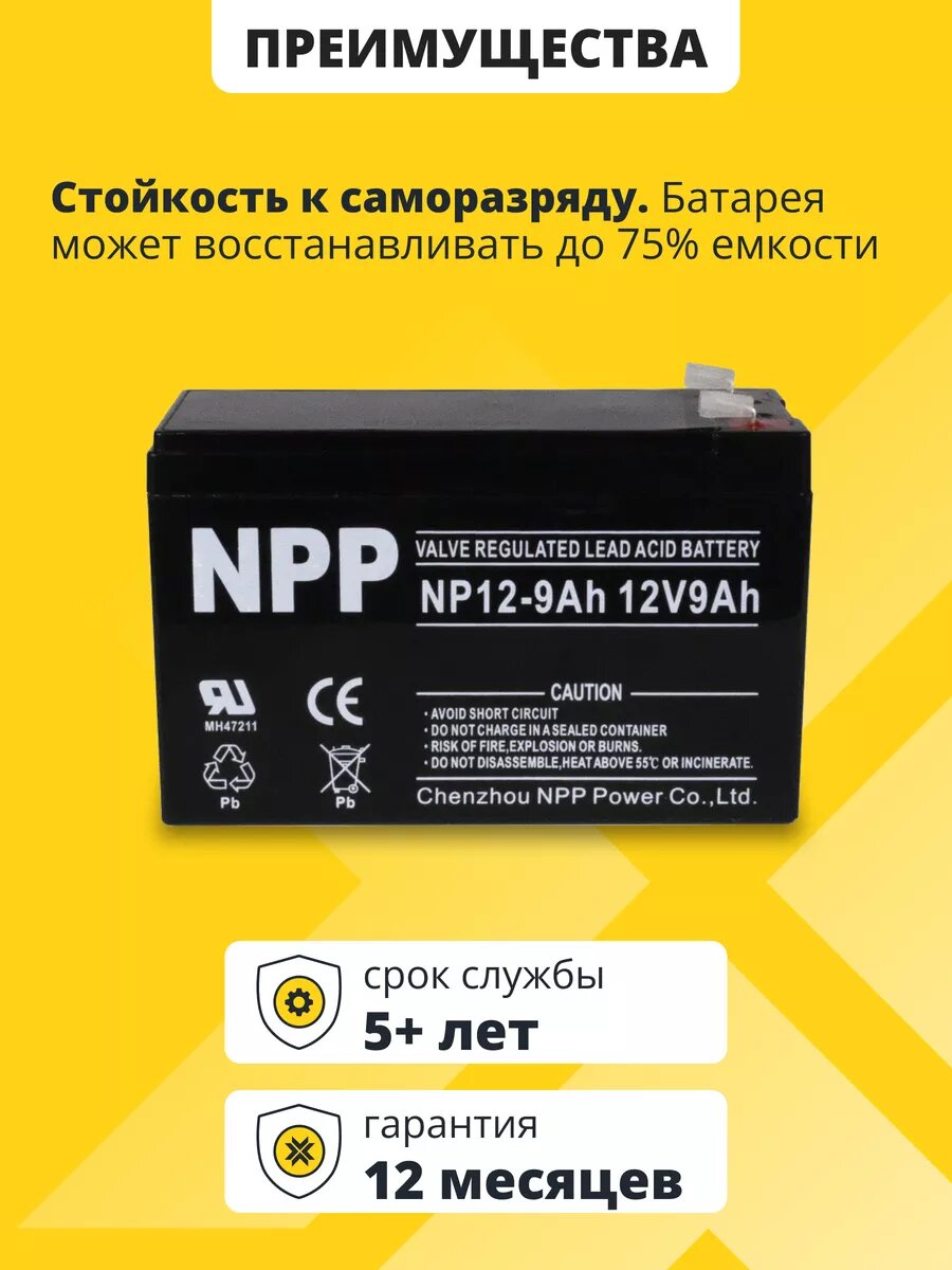 Аккумулятор для ибп NPP AGM 12v 9ah – устройство, предназначенное для обеспечения стабильного электропитания при отключении основного источника энергии. Бесперебойник для дома, компьютера играет важную роль в защите оборудования от потерь данных и повреждений, вызванных внезапными сбоями электроснабжения. Одним из лидеров на рынке стационарных аккумуляторов 12 вольт является серия NPP, гарантирующая надежность и эффективность в работе источников бесперебойного питания. В аккумуляторе AGM 12В электролит абсорбирован в стекловолоконном сепараторе, что обеспечивает герметичность, устойчивость к вибрациям и низкое электрическое сопротивление. Они отличаются высокой стойкостью к глубокому разряду, большим количеством циклов перезаряда, прочным корпусом. Аккумуляторы для детской машины, мотоцикла, электромобиля являются безопасными для человека и окружающей среды, поскольку не выделяют вредных паров и не подвержены вытеканию электролита. Еще одно преимущество аккумуляторов для машинки на радиоуправлении – их можно монтировать в произвольном положении под наклоном, даже в перевернутом состоянии. Аккумуляторы для бесперебойника не требуют обслуживания, рекомендованы для использования как в буферном, так и циклическом режимах. Акб для источников резервного питания являются универсальными: кассовые аппараты, кассы, медицинское, торговое оборудование, пк, компьютеры, газовые и электро котлы отопления, аварийное освещение, системы видеонаблюдения, охранная пожарная сигнализация, извещатель, телекоммуникации, связь, промышленные установки, электропастухи, эхолоты 12v, насосы, детские машинки, скутеры, квадроциклы, электромашины, игрушки для ребенка, инвалидные коляски, фонари, фонарики, весы, опрыскиватели садовые умница, осветительные и переносные приборы, солнечные панели и батареи, инкубаторы. Регулярно проверяйте состояние и уровень заряда акб для ибп. Перед покупкой уточните рабочие параметры ранее установленной свинцово-кислотной батареи.