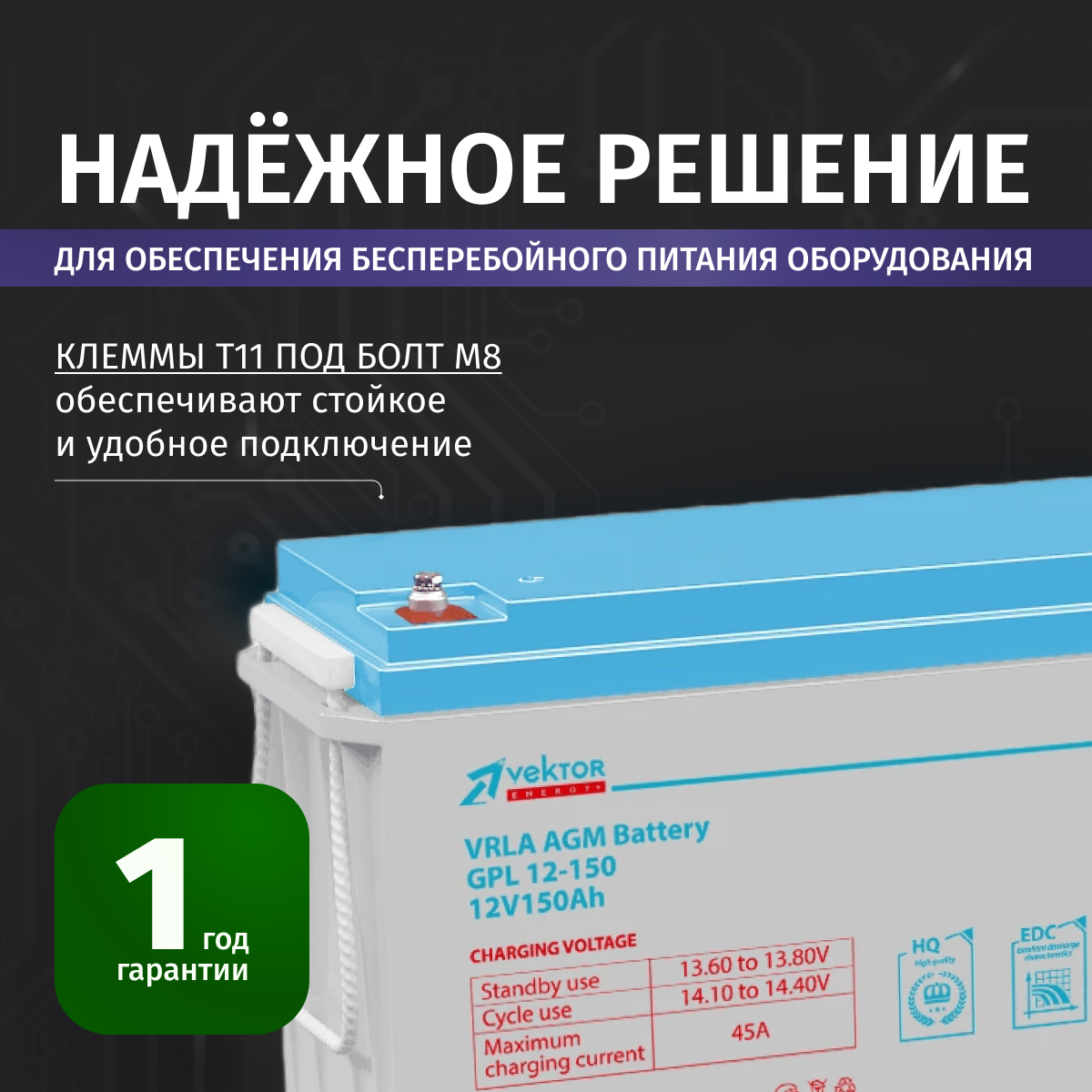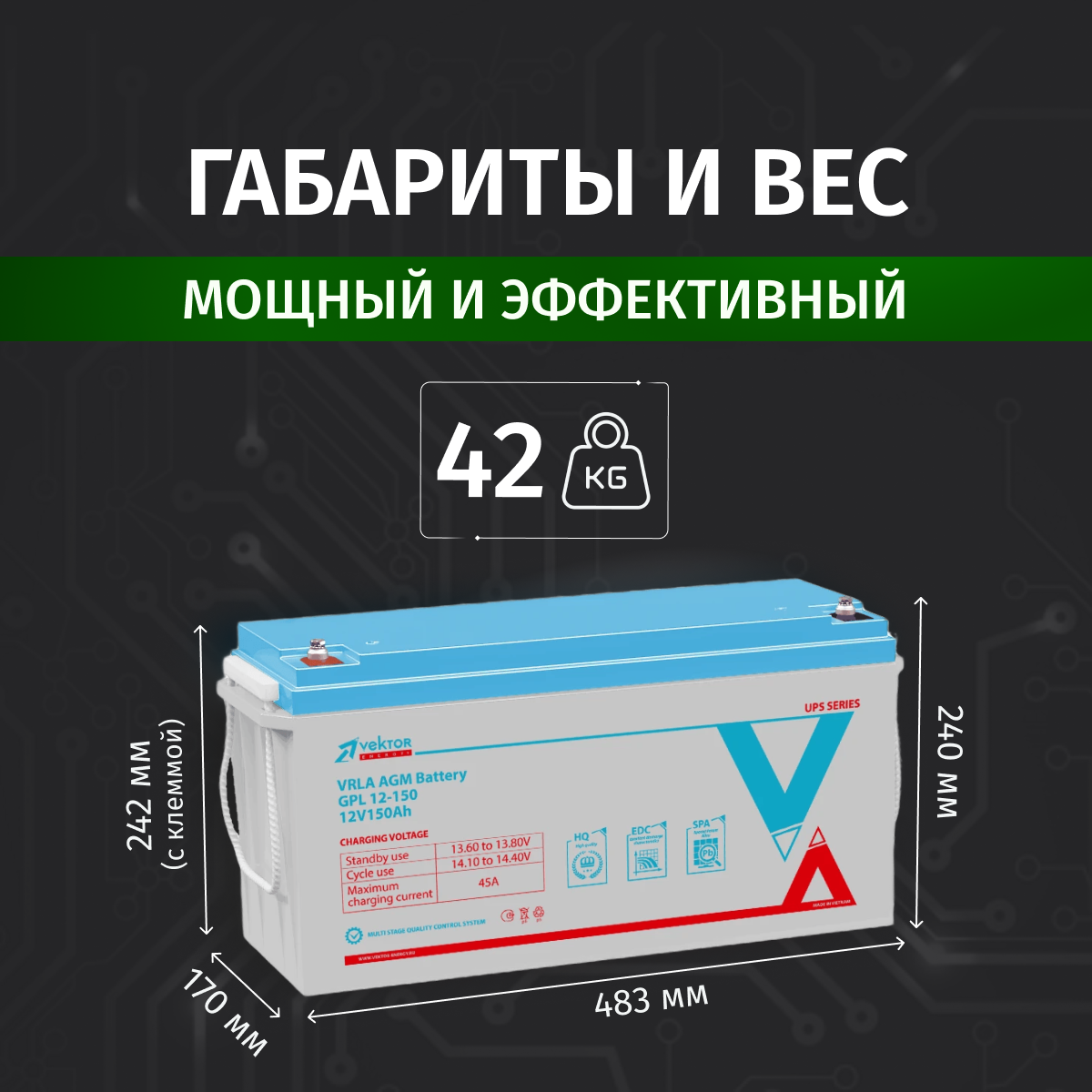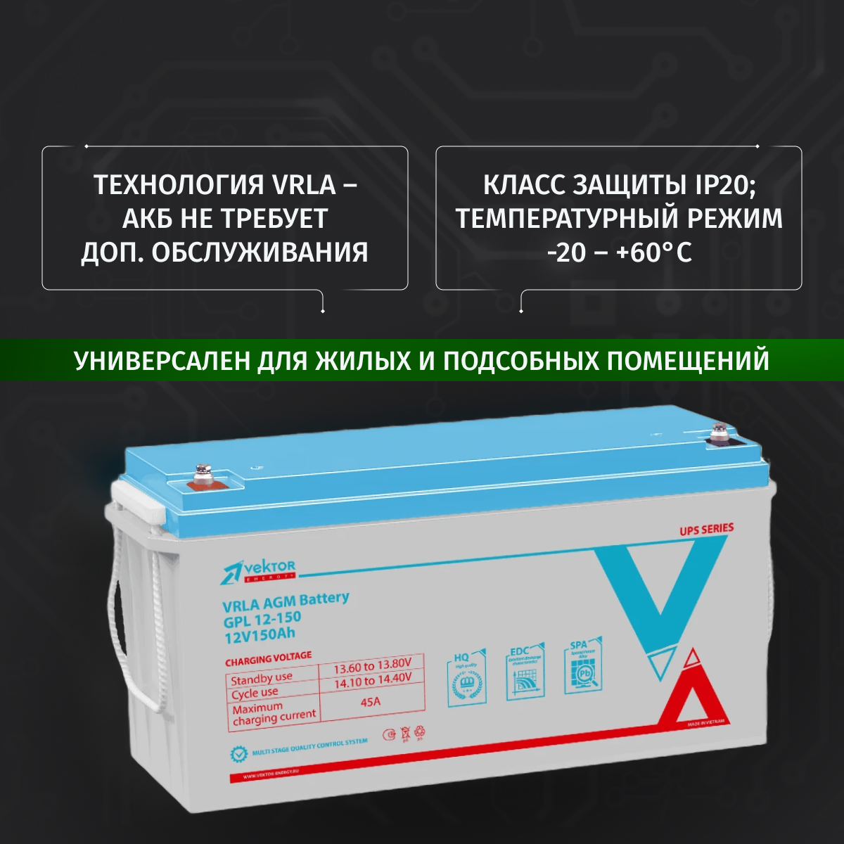 Аккумулятор для ИБП Vektor Energy GPL 150Ач, 12В / АКБ для ИБП / аккумулятор для бесперебойника: сравнение цен, характеристики, фото, актуальное наличие и цены.