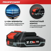 Подходит к линейкам аккумуляторных инструментов c аналогичными параметрами аккумулятора. Так же совместим с некоторыми устройствами фирм MAKITA(китайский аналог!), Deko, ZITREK, Heimerdinger, FAVOURITE, Handtek, DYMAX, Kamolee, Krotof, Afabeita, Miura, TianC, PHOQ важно: сверяйтесь пожалуйста с размерами указанными в карточке товара. Вес аккумуляторного блока без упаковки 0,385кг+/- 10гр Гарантирована совместимость с моделями - Vniissok: V0005, V0007, V0016, V0017, V0019, V0021, V0024, V0025, V0031. Profipower: T0056, T0058, E0186, E0164, E0148, E0145, E0144, E0129, E0127, E0125, E0123, E0117, E0115, E0111, E0110, E0102, E0100, E0097, E0096, E0090, E0089, E0088, E0087, E0084, E0082, E0081, E0080, E0011, E0010 Тип аккумулятора: Li-Ion Устройство аккумулятора: слайдер Емкость аккумулятора: 2.0 А*ч Напряжение: 18 В