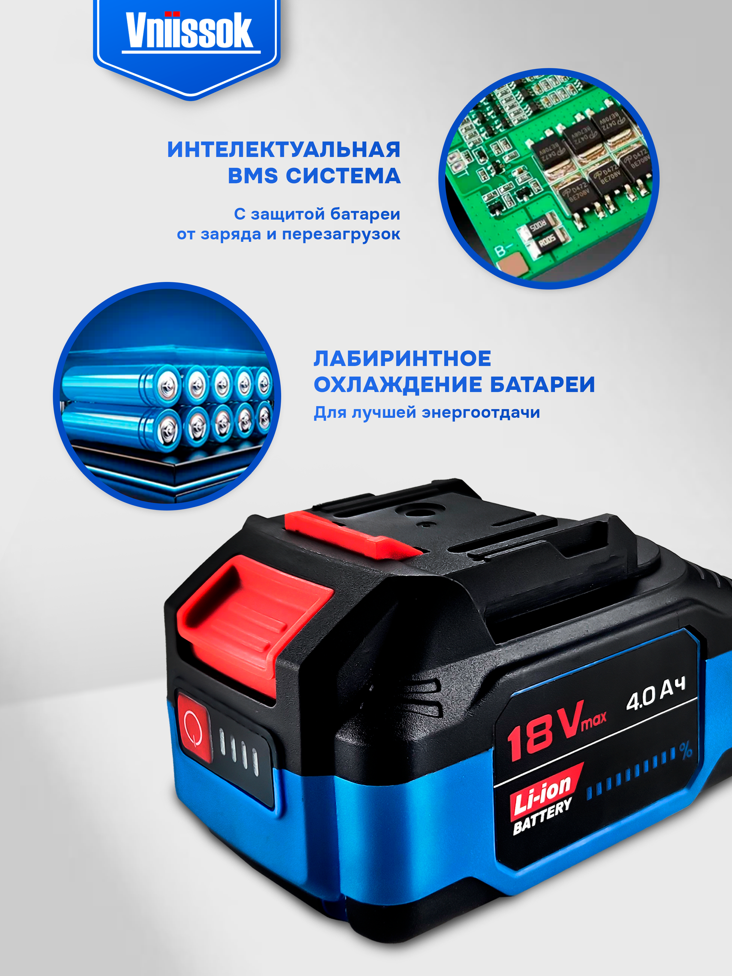 1 шт - Li-ion 4 Ah 18 V Аккумулятор для инструмента VNIISSOK