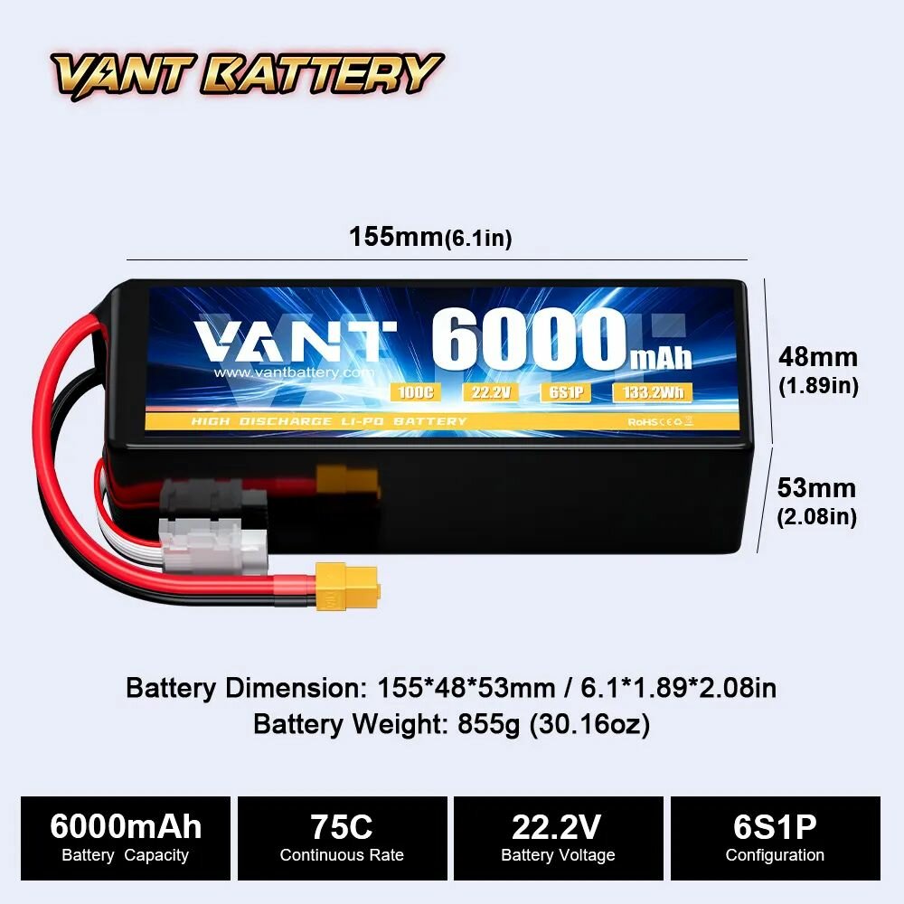 Аккумулятор для FPV дрона LiPo 6S 6000 mah XT60 - это высококачественный и надежный источник питания для вашего квадрокоптера, обеспечивающий продолжительное время полета и стабильную работу.