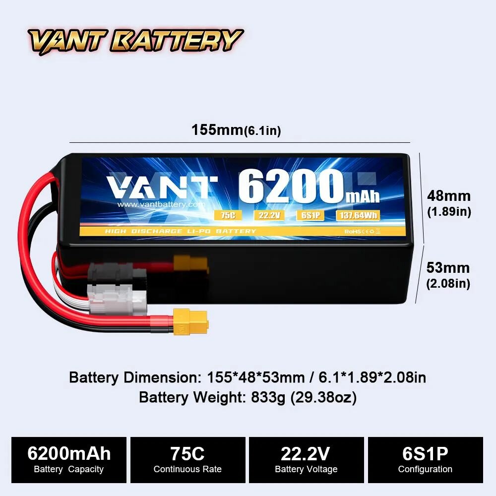 Аккумулятор для FPV дрона LiPo 6S 6200 mah XT60 - это высококачественный и надежный источник питания для вашего квадрокоптера, обеспечивающий продолжительное время полета и стабильную работу.
