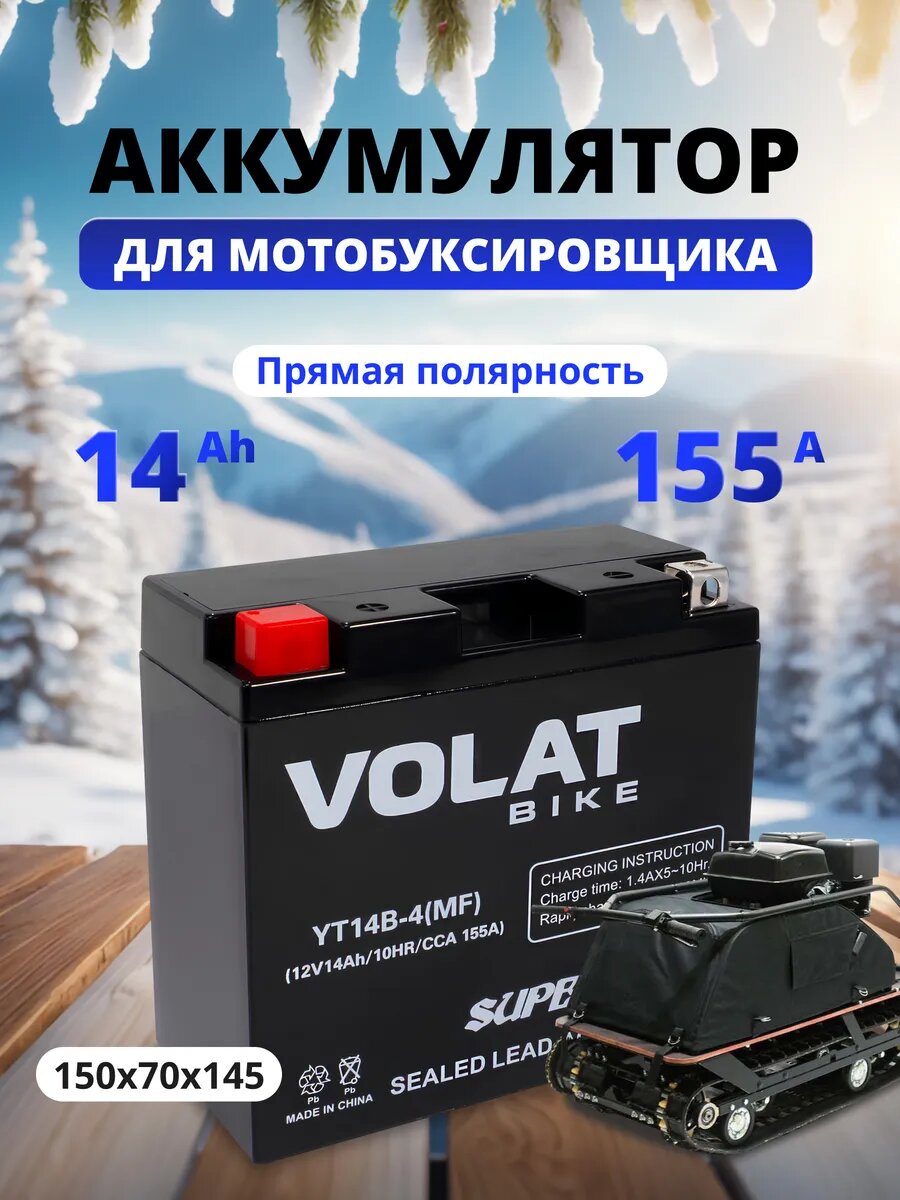 Мото аккумулятор 12 вольт 14 ампер VOLAT YT14B-4 AGM обеспечивает длительный срок службы и превосходную производительность даже в самых экстремальных условиях. Правильно подобранный акб мотоцикла 12в 14ач – гарантия длительной поездки и нормального запуска ДВС.