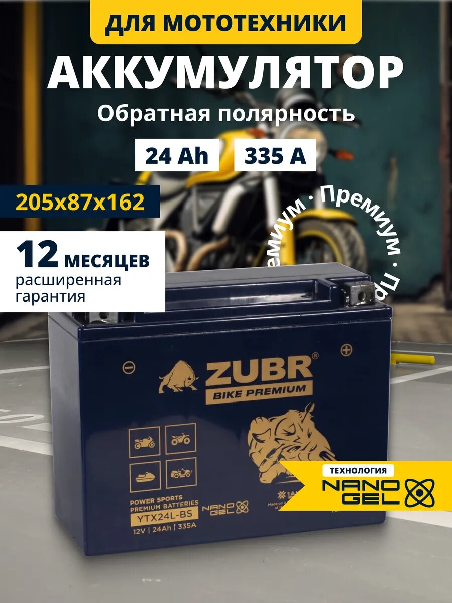 ZUBR PREMIUM YTX24L-BS (GEL) – это высококачественный гелевый мото аккумулятор, разработанный для стабильной работы даже в самых экстремальных условиях. Он обеспечивает уверенный запуск двигателя, долгий срок службы и высокую энергоотдачу. Благодаря необслуживаемой гелевой технологии, аккумулятор имеет повышенную устойчивость к глубокому разряду и отлично работает при низких температурах.
