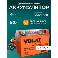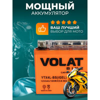 Мото аккумулятор 4 ач VOLAT YTX4L-BS(iGEL) (оем номера СТ 1204; YTX4L-BS; MTG 12-4 YTX4L-BS-Gel EB4-3 STZ5S KTZ5S ETX4L-BS) гарантирует длительный срок службы и превосходную производительность даже в самых экстремальных условиях. Для того, чтобы получить истинное удовольствие от скорости и качества езды, у мотоцикла должен быть не только мощный двигатель, но также и надежный аккумулятор. Правильно подобранный акб на мотоцикл – гарантия длительной поездки и нормального запуска ДВС. Линейка аккумуляторных батарей VOLAT отличается высокой герметичностью и вибростойкостью, имеет прочный корпус из ударостойкого пластика. Долговечность и высокая энергоемкость аккумулятора мотоциклетного 12v гарантируют долгую бесперебойную работу мотобайка. Аккумуляторы для мотоцикла гелевые 12в обладают высокой стартовой мощностью и повышенной энергоотдачей, являются универсальными, подходят для пуска двигателей мототехники: мотоцикл альфа, урал, электро мопед, иж планета юпитер, скутер электрический, гидроцикл, квадроцикл, снегоход, снегоуборщик, снегоочиститель, багги, мотовездеход, питбайк 125, пит байк, трицикл, электротрицикл, мотособака, мотобуксировщик, снегоуборщик, бензогенератор, генератор и др. Аккумулятор мото 12 вольт на альфу GEL отличается стойкостью к глубокому разряду и воздействию низких температур, является необслуживаемым. Мото аксессуары эндуро мужские имеют высокий показатель пускового тока и срок службы более пяти лет. Основные преимущества аккумулятора для мопеда альфа: полностью герметичная конструкция, не допускающая утечку электролита; система внутренней рекомбинации газа акб для скутера 12 в исключает необходимость долива дистиллята; повышенные стартовые характеристики; высокая устойчивость к циклированию, вибрациям при любом стиле езды; адаптированы к российским дорогам и климату. Перед покупкой мототовара узнайте размеры посадочного места. Мотоаккумулятор Волат прост в установке, может работать в любом положении и позволяет быть уверенным в надежном запуске.