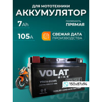 Купить Аккумулятор для мотоцикла 12v Volat YTX7A-BS(MF) прямая полярность 7 Ah 105 A AGM, акб на скутер, мопед, квадроцикл, мотоцикл с доставкой по всей России.