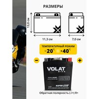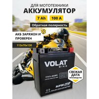 Мото аккумулятор 7 ач VOLAT YTX7L-BS(MF) (оем номера СТ 1207.1; YTX7L-BS; MT 12-7-A; EBZ10-4; EB7-3) гарантирует длительный срок службы и превосходную производительность даже в самых экстремальных условиях. Для того, чтобы получить истинное удовольствие от скорости и качества езды, у мотоцикла должен быть не только мощный двигатель, но также и надежный аккумулятор. Правильно подобранный акб на мотоцикл – гарантия длительной поездки и нормального запуска ДВС. Линейка аккумуляторных батарей VOLAT отличается высокой герметичностью и вибростойкостью, имеет прочный корпус из ударостойкого пластика. Долговечность и высокая энергоемкость аккумулятора мотоциклетного 12v гарантируют долгую бесперебойную работу мотобайка. Аккумуляторы для мотоцикла 12в обладают высокой стартовой мощностью и повышенной энергоотдачей, являются универсальными, подходят для пуска двигателей мототехники: мотоцикл альфа, урал, электро мопед, иж планета юпитер, скутер электрический китайский японский, гидроцикл, квадроцикл, снегоход, снегоуборщик, снегоочиститель, багги, мотовездеход, питбайк 125, пит байк, трицикл, мотособака, мотобуксировщик, снегоуборщик, бензогенератор, генератор и др. Аккумулятор мото 12 вольт на альфу AGM отличается стойкостью к глубокому разряду и воздействию низких температур, является необслуживаемым. Мото аксессуары эндуро мужские имеют высокий показатель пускового тока и срок службы более пяти лет. Основные преимущества аккумулятора для мопеда альфа: полностью герметичная конструкция, не допускающая утечку электролита; система внутренней рекомбинации газа акб для скутера 12 в исключает необходимость долива дистиллята; повышенные стартовые характеристики; компактность; высокая устойчивость к циклированию, вибрациям при любом стиле езды; адаптированы к российским дорогам и климату. Перед покупкой мототовара узнайте размеры посадочного места. Мотоаккумулятор Волат прост в установке, может работать в любом положении и позволяет быть уверенным в надежном запуске.