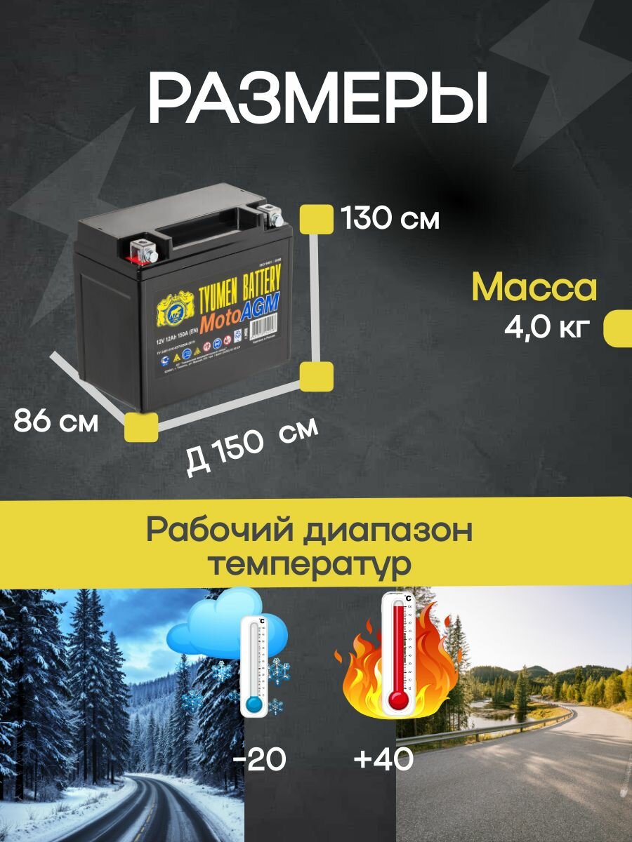 Аккумулятор для мотоцикла 6МТС-12 Moto AGM прямой полярности, 12В (г. Тюмень): сравнение цен, характеристики, фото, актуальное наличие и цены.
