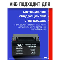 Линейка аккумуляторных батарей MYWAY отличается высокой стартовой мощностью и виброустойчивостью, имеет прочный корпус из ударостойкого пластика. Мотоаккумулятор адаптирован к российским дорогам и климату, обладая повышенной стойкостью к циклированию и вибрациям при любом стиле езды. Долговечность и повышенная энергоемкость аккумулятора мотоциклетного 12v на скутер, питбайк, генератор, квадроцикл, гарантируют их долгую бесперебойную работу.