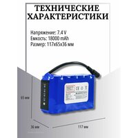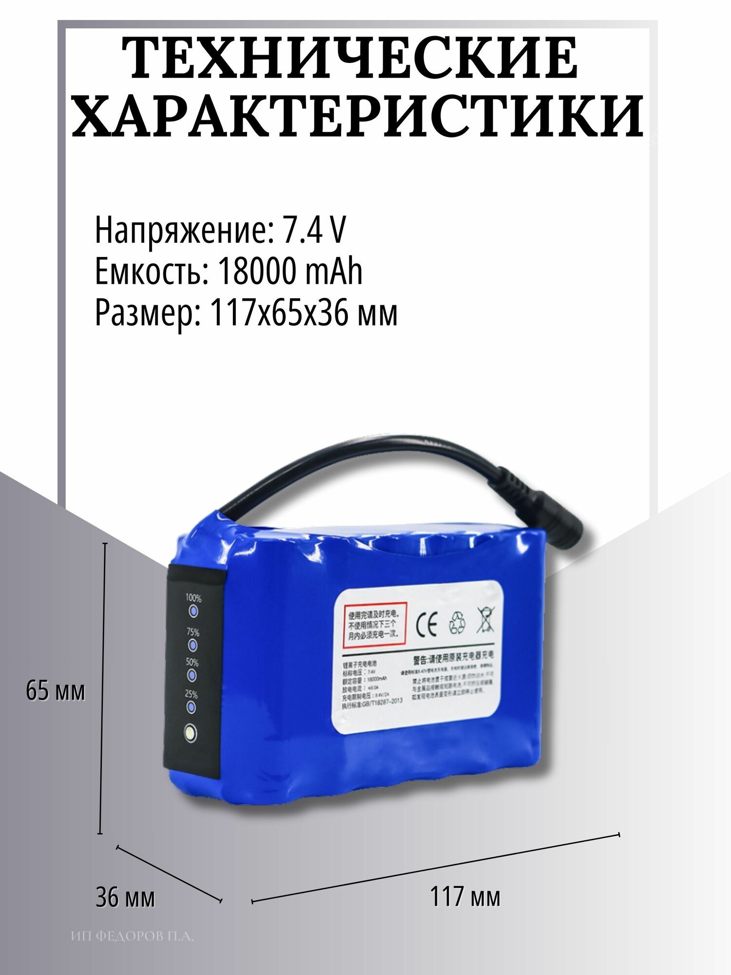 Мощный Аккумулятор 7.4V 18000mAh для Прикормочных Корабликов – Продлите Время Вашей Рыбалки. Представляем вашему вниманию высокоемкий аккумулятор для прикормочных кораблей, обеспечивающий длительное время работы без необходимости частой перезарядки. С напряжением 7.4V и ёмкостью 18000mAh, этот аккумулятор является идеальным решением для серьезных рыболовов, желающих максимизировать эффективность и продолжительность своих рыбалок.