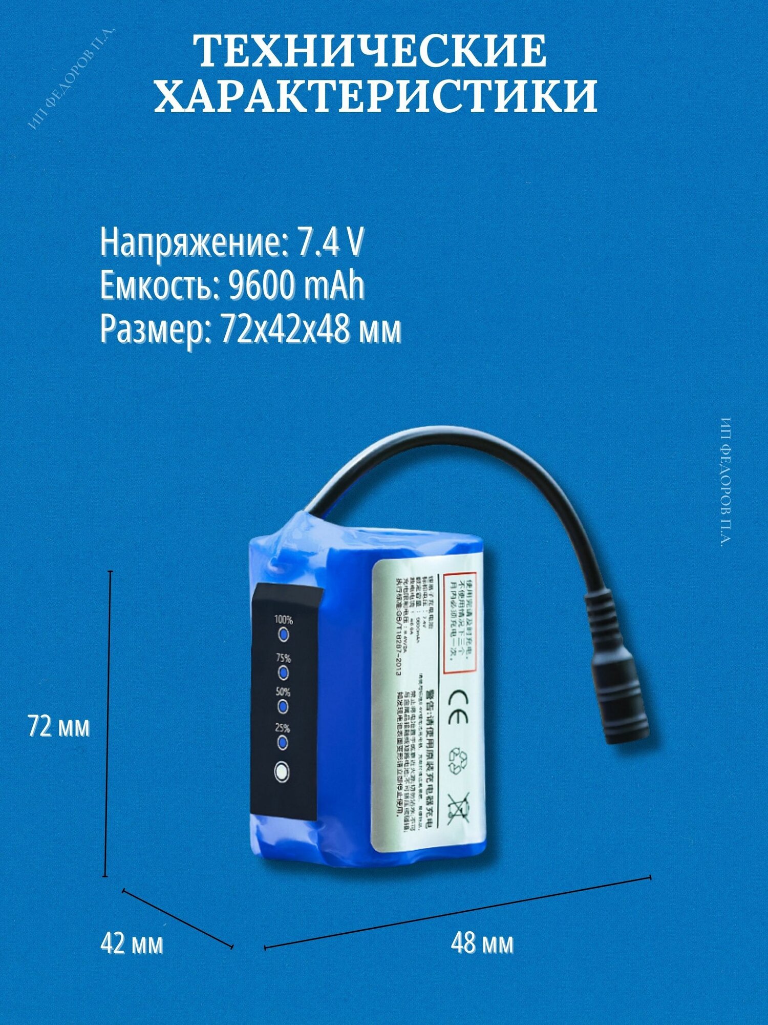 Мощный Аккумулятор 7.4V 9600mAh для Прикормочных Корабликов – Продлите Время Вашей Рыбалки. Представляем вашему вниманию высокоемкий аккумулятор для прикормочных кораблей, обеспечивающий длительное время работы без необходимости частой перезарядки. С напряжением 7.4V и ёмкостью 9600mAh, этот аккумулятор является идеальным решением для серьезных рыболовов, желающих максимизировать эффективность и продолжительность своих рыбалок.