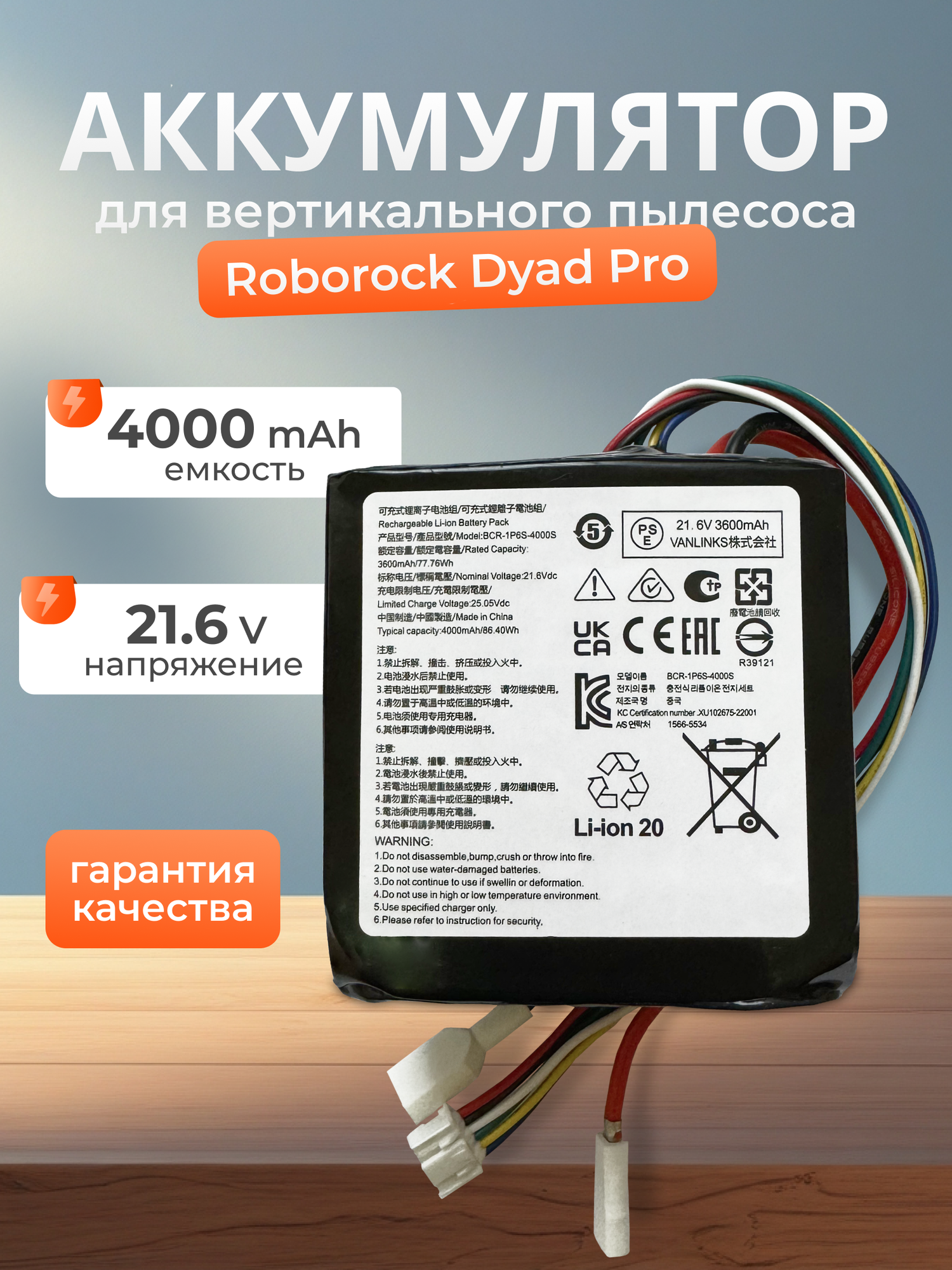 Купить Аккумулятор для пылесоса Roborock Dyad Pro (WD2H1A), 4000 мАч с доставкой по всей России. Аккумулятор для пылесоса Roborock Dyad Pro (WD2H1A), 4000 мАч: сравнение цен, характеристики, фото, актуальное наличие и цены.