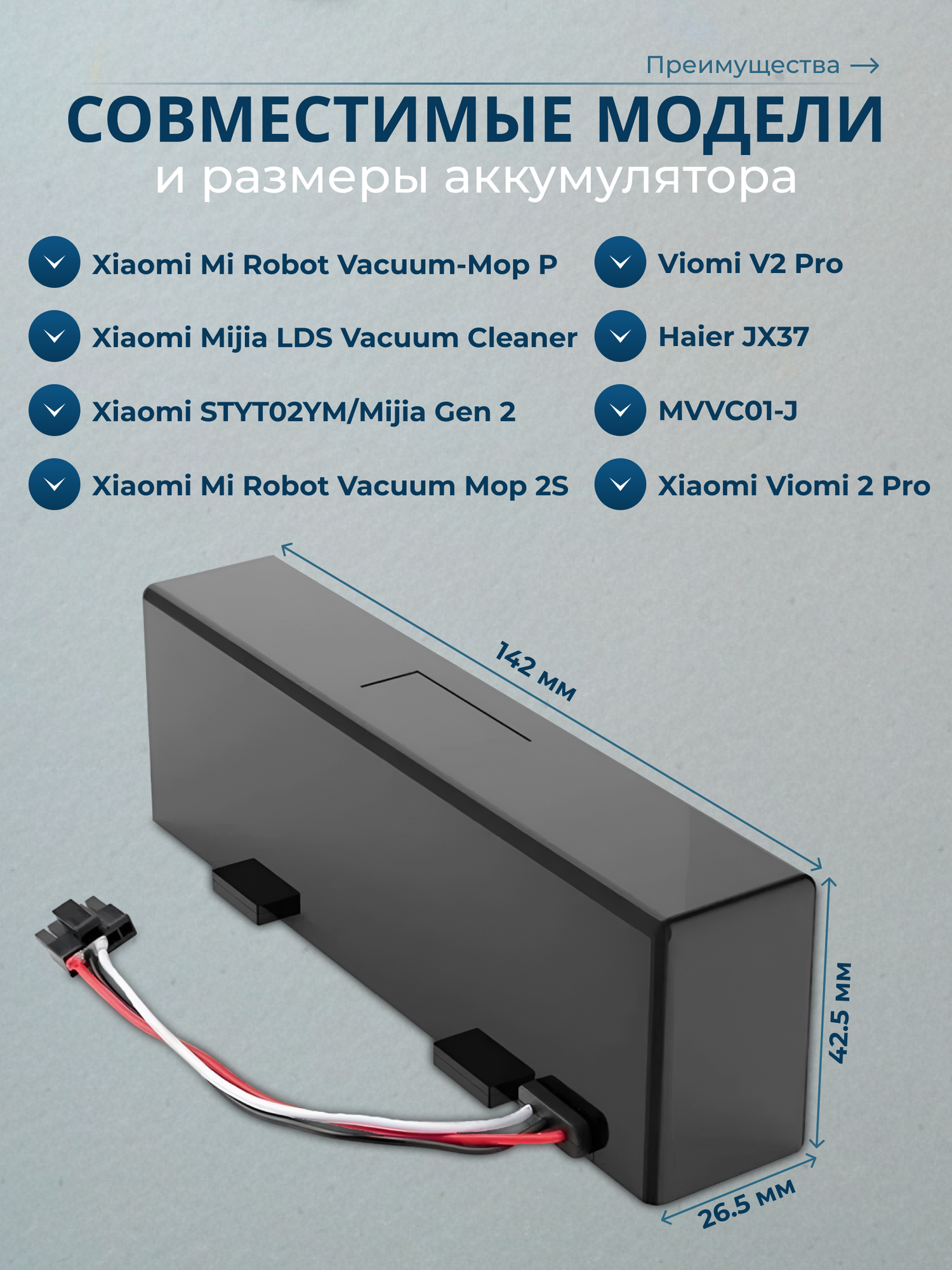 Аккумулятор для пылесосов Xiaomi Mijia LDS Vacuum Cleaner (STYTJ02YM), Mi Robot Vacuum Mop P, 2S, 3C, S10, 3200 мАч: сравнение цен, характеристики, фото, актуальное наличие и цены.