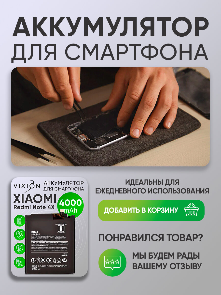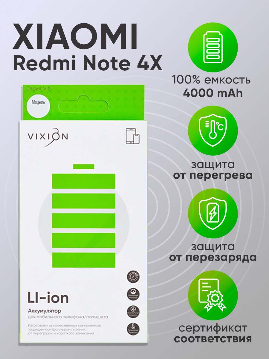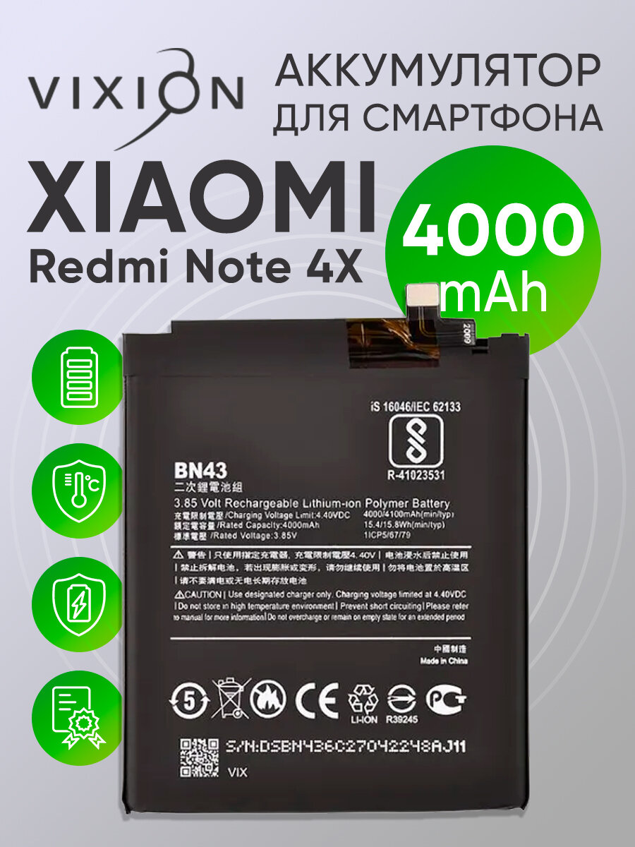 Купить Аккумулятор для Xiaomi Redmi Note 4X (BN43) (VIXION) 4100мАч с доставкой по всей России. Аккумулятор для Xiaomi Redmi Note 4X (BN43) (VIXION) 4100мАч: сравнение цен, характеристики, фото, актуальное наличие и цены.