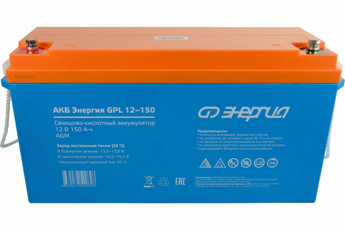 Благодаря технологии AGM, аккумулятор Энергия GPL 12-150 обеспечивает высокую плотность энергии и обладает повышенной безопасностью. Это означает, что он не выделяет вредных газов в случае перегрева или короткого замыкания, что делает его безопасным для использования в различных условиях.