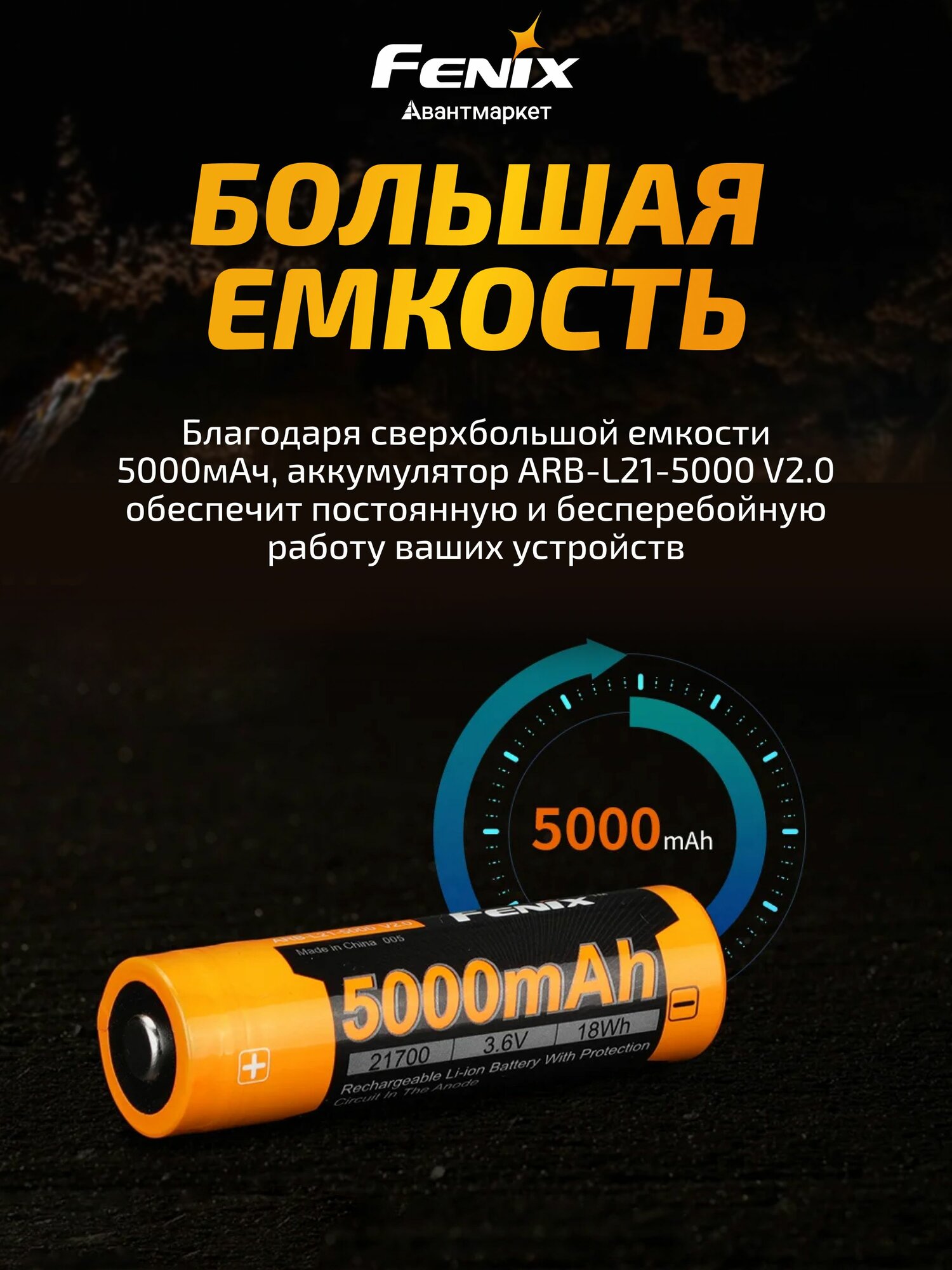 Купить Аккумулятор Fenix ARB-L21-5000 v2.0 21700 LI-Ion 5000 mAh, ARB-L21-5000V20 с доставкой по всей России.