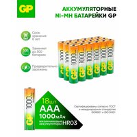 Купить GP Батарейки ААА аккумуляторные мизинчиковые GP, аккумуляторы 1000 мАч Ni-Mh, набор 18 шт с доставкой по всей России.