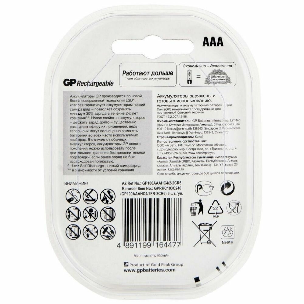 Купить Аккумулятор GP 100AAAHC4 (100AAAHC4/2-2CR6 36/360) с доставкой по всей России. Аккумулятор GP 100AAAHC4 (100AAAHC4/2-2CR6 36/360): сравнение цен, характеристики, фото, актуальное наличие и цены.
