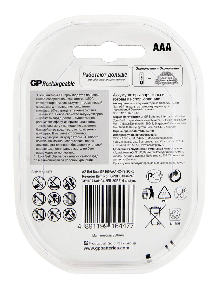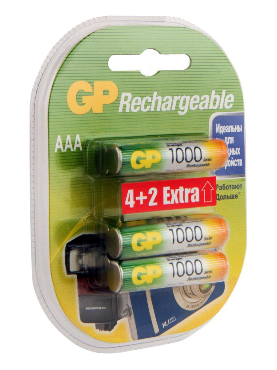 Купить Аккумулятор GP Rechargeable 100AAAHC4/2 AAA NiMH 1000mAh (6шт) блистер с доставкой по всей России. Аккумулятор GP Rechargeable 100AAAHC4/2 AAA NiMH 1000mAh (6шт) блистер: сравнение цен, характеристики, фото, актуальное наличие и цены.