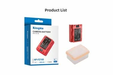 Литий-ионный аккумулятор повышенной емкости Kingma NP-FZ100. Батарея обладает встроенной защитой от повышенного напряжения, глубокого разряда, короткого замыкания, перегрева и так далее. В комплекте также идет защитный герметичный кейс, который обеспечивает защиту от пыли и влаги. Внутри кейса предусмотрены крепления для 2 карт типа microSD и 1 SD карточки. Контакты выполнены из чистой меди для более эффективной отдачи энергии, корпус – из жаростойкого АБС пластика.