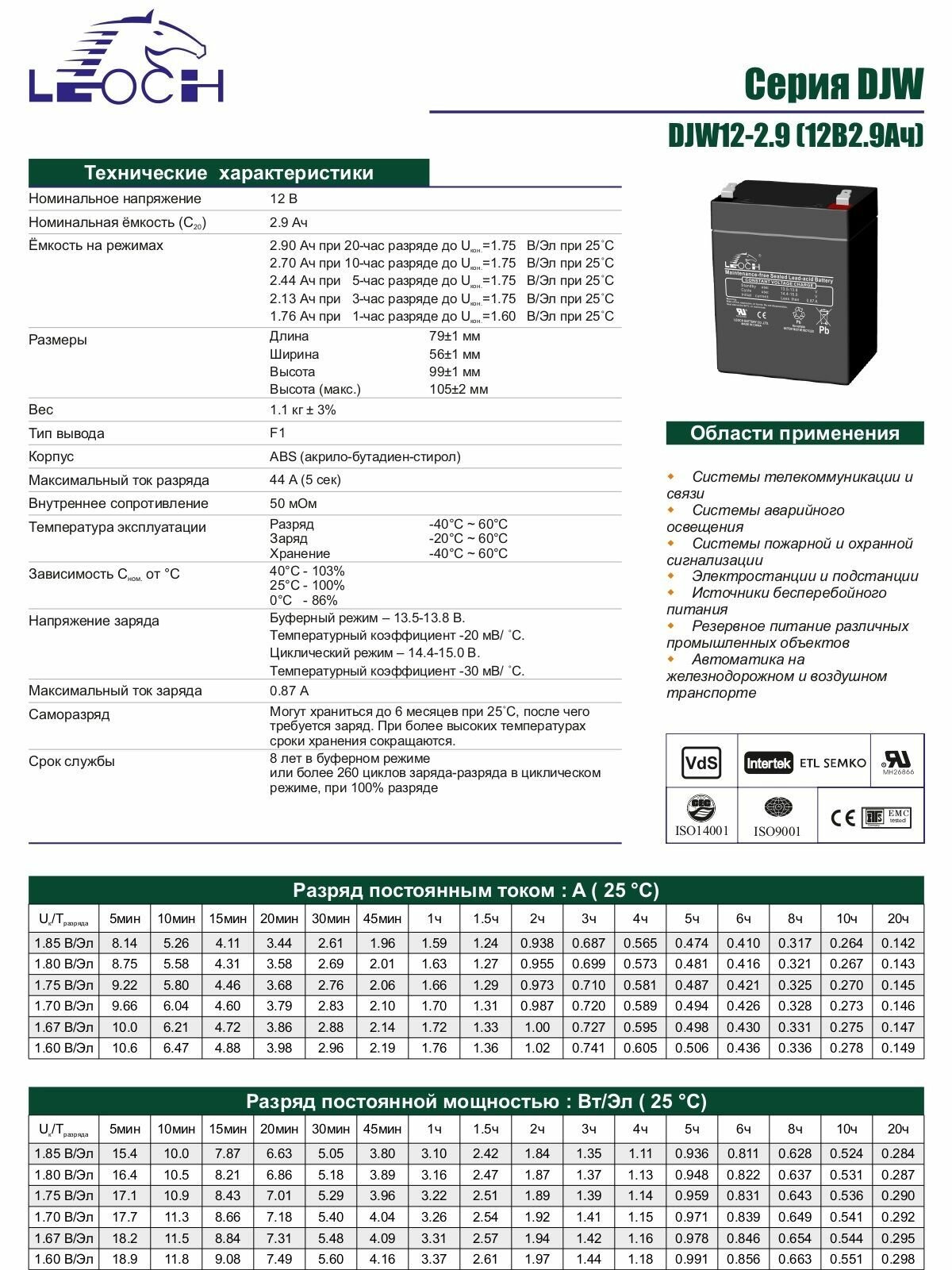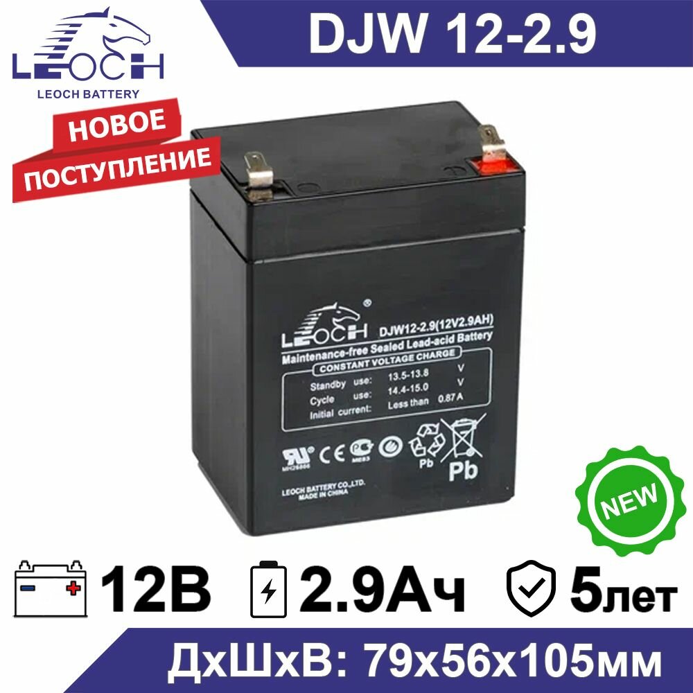 Аккумулятор Leoch DJW 12-2.9 12В 2.9Ач (12V 2.9Ah) для ИБП, UPS, инвертора, системы безопасности, для котла отопления, для бесперебойника, электроинструмента, телекоммуникации и водоснабжения: сравнение цен, характеристики, фото, актуальное наличие и цены.