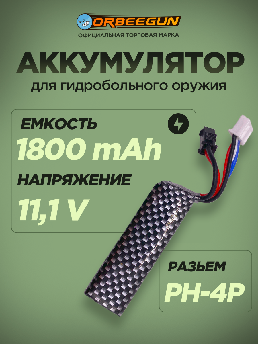 Купить Аккумулятор Li-Po 11.1V 1800mah, 4х пиновый Орбиган для орбиз автомата с доставкой по всей России. Аккумулятор Li-Po 11.1V 1800mah, 4х пиновый Орбиган для орбиз автомата: сравнение цен, характеристики, фото, актуальное наличие и цены.