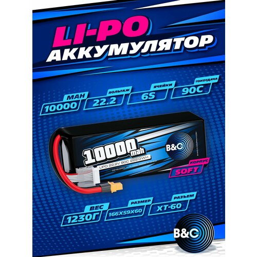 Выбирая аккумулятор Li-po B&C 10000 MAH 22.2V (6s) 90C, вы получаете надежный и мощный источник питания для вашего FPV дрона.