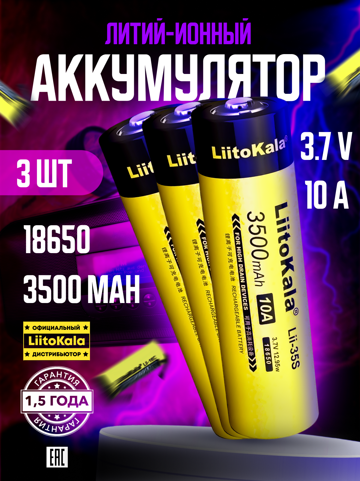 Купить Аккумулятор LiitoKala 18650 Lii-35S 3.7V 3500 mAh для фонарей и радиоприёмников 3 шт. с доставкой по всей России.