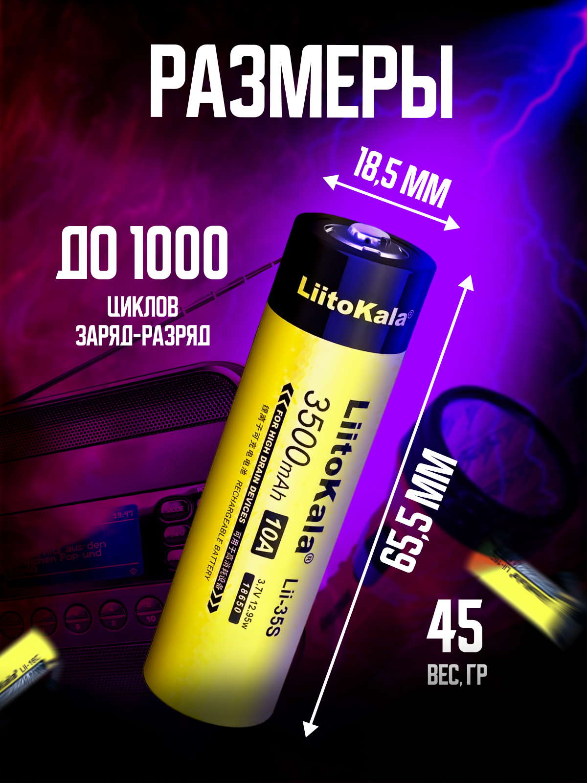 Аккумулятор LiitoKala 18650 Lii-35S 3.7V 3500 mAh для фонарей и радиоприёмников 3 шт.: сравнение цен, характеристики, фото, актуальное наличие и цены.