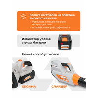 Корпус литий-ионной батареи выполнен из прочного, УФ-устойчивого пластика, который не выцветает, остаётся тактильно приятным и безопасным. Удобная индикация: 4 ярких светодиода показывают уровень заряда.