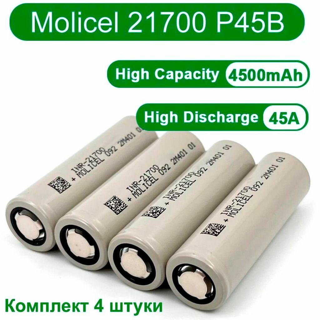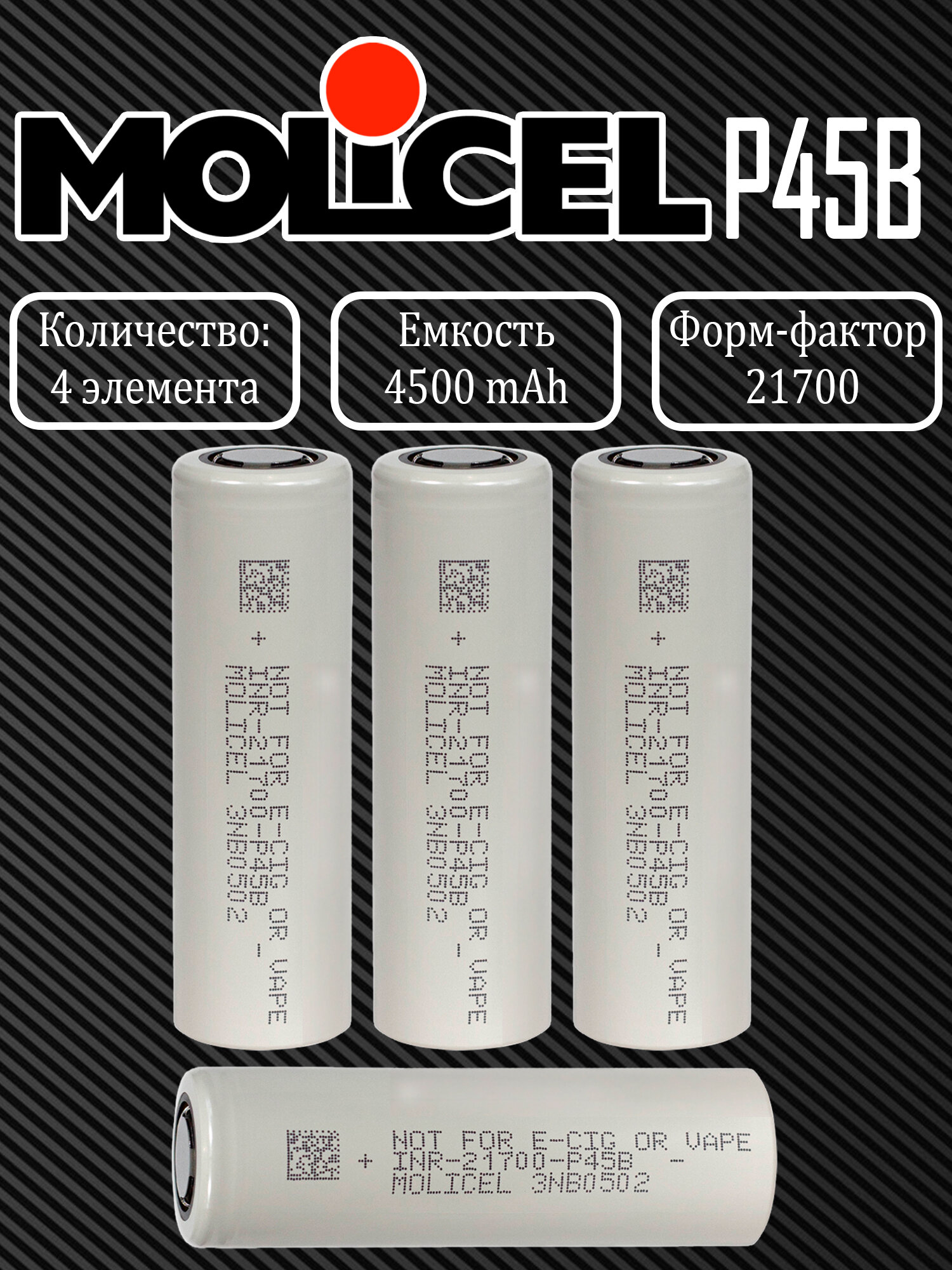 Купить Аккумулятор Molicel 21700 P45B 4500 mAh Grade A0 (Комплект 4 элемента) серый с доставкой по всей России.