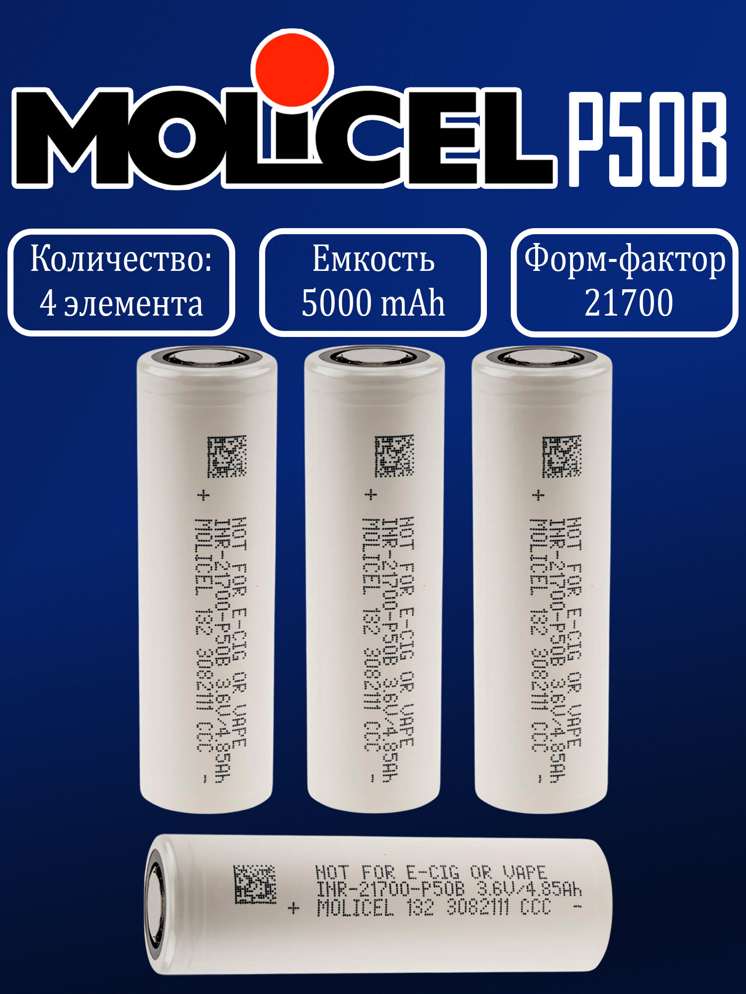 Купить Аккумулятор Molicel 21700 P50B 5000mAh 35A (Комплект 4 элемента) серый с доставкой по всей России. Аккумулятор Molicel 21700 P50B 5000mAh 35A (Комплект 4 элемента) серый: сравнение цен, характеристики, фото, актуальное наличие и цены.