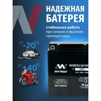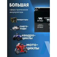 Линейка аккумуляторных батарей MYWAY отличается высокой стартовой мощностью и виброустойчивостью, имеет прочный корпус из ударостойкого пластика. Мотоаккумулятор адаптирован к российским дорогам и климату, обладая повышенной стойкостью к циклированию и вибрациям при любом стиле езды. Долговечность и повышенная энергоемкость аккумулятора мотоциклетного 12v на скутер, питбайк, генератор, квадроцикл, гарантируют их долгую бесперебойную работу.