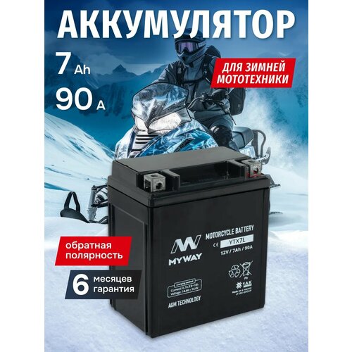 Мото аккумулятор 12 вольт 7 ампер MYWAY YTX7L-BS AGM обеспечивает длительный срок службы и превосходную производительность даже в самых экстремальных условиях. Правильно подобранный акб мотоцикла 12в 7ач – гарантия длительной поездки и нормального запуска ДВС.