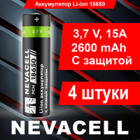 Купить Аккумулятор NEVACELL 18650 2600mah, Li-ion 3.7V, с защитой, 4 штуки с доставкой по всей России.