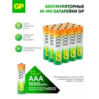 Купить GP Батарейки ААА аккумуляторные мизинчиковые, аккумуляторы 1000 мАч Ni-Mh, набор 12 шт с доставкой по всей России.