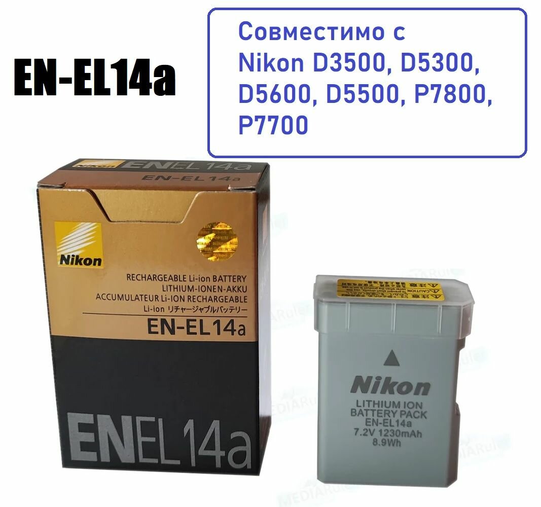 Аккумулятор NIKON EN-EL14a для фотоаппаратов Nikon DF, D3300, D3400, D3500, D5300, D5600, D5500, P7800, P7700: сравнение цен, характеристики, фото, актуальное наличие и цены.