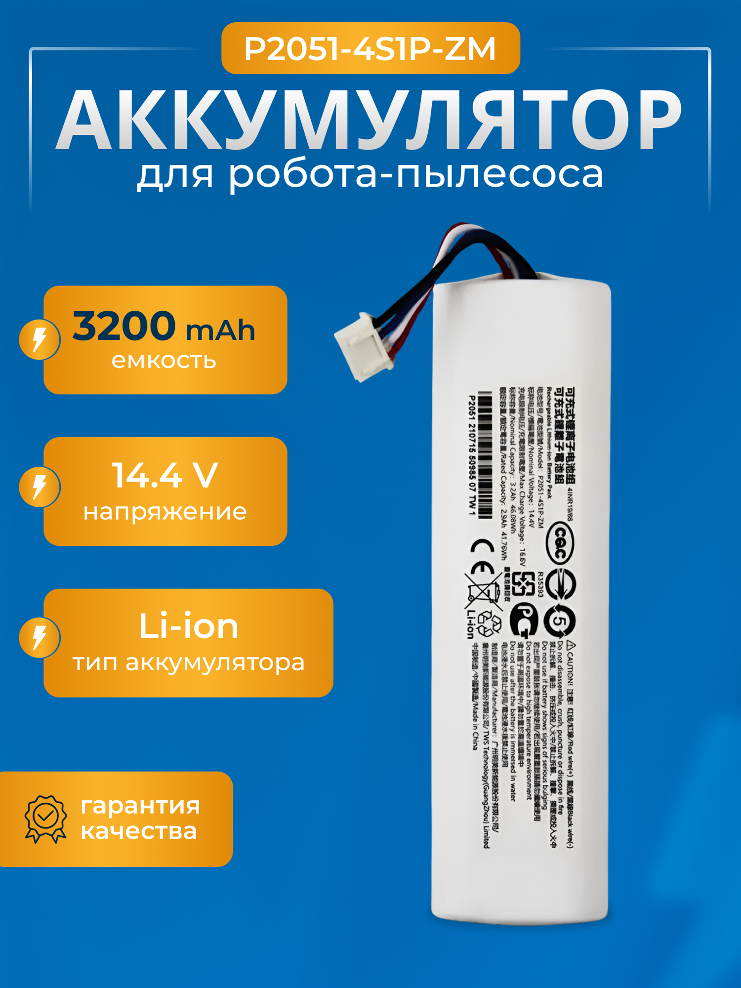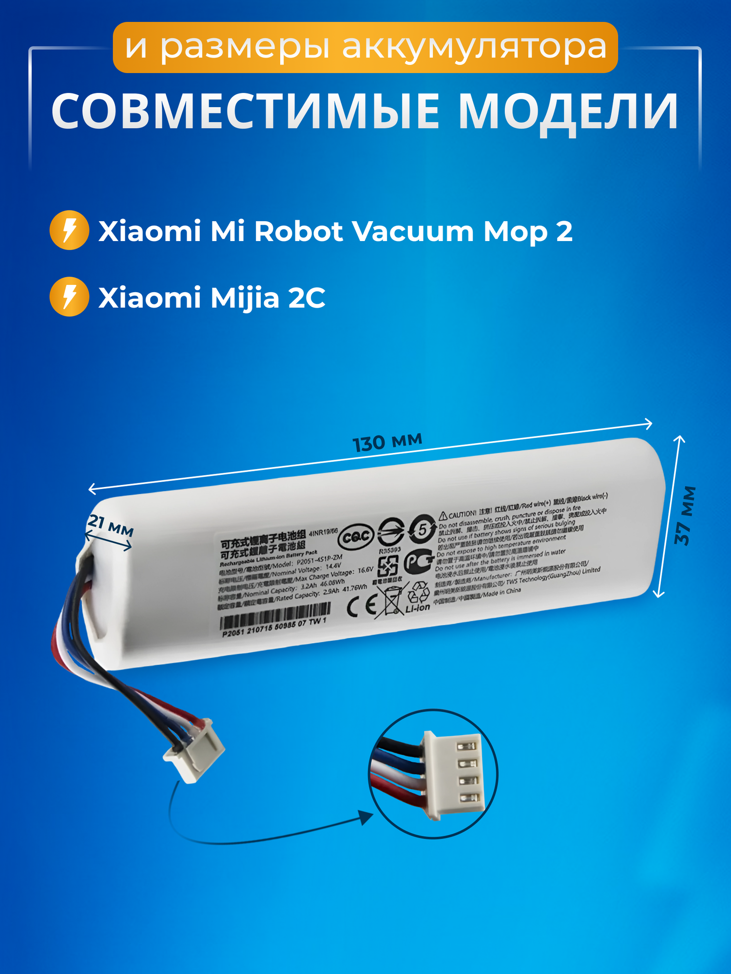 Аккумулятор P2051-4S1P-ZM для пылесоса Xiaomi Mi Robot Vacuum Mop 2, Mijia 2С (STYTJ03ZHM): сравнение цен, характеристики, фото, актуальное наличие и цены.