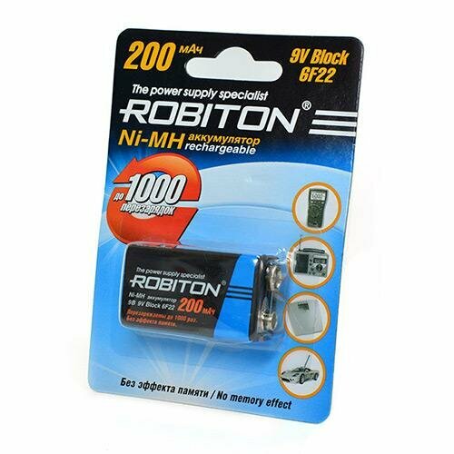 Купить Аккумулятор Robiton 6HR61 (Крона) Ni-Mh Block 200mAh BL1 200MH9, 1шт. с доставкой по всей России. Аккумулятор Robiton 6HR61 (Крона) Ni-Mh Block 200mAh BL1 200MH9, 1шт.: сравнение цен, характеристики, фото, актуальное наличие и цены.