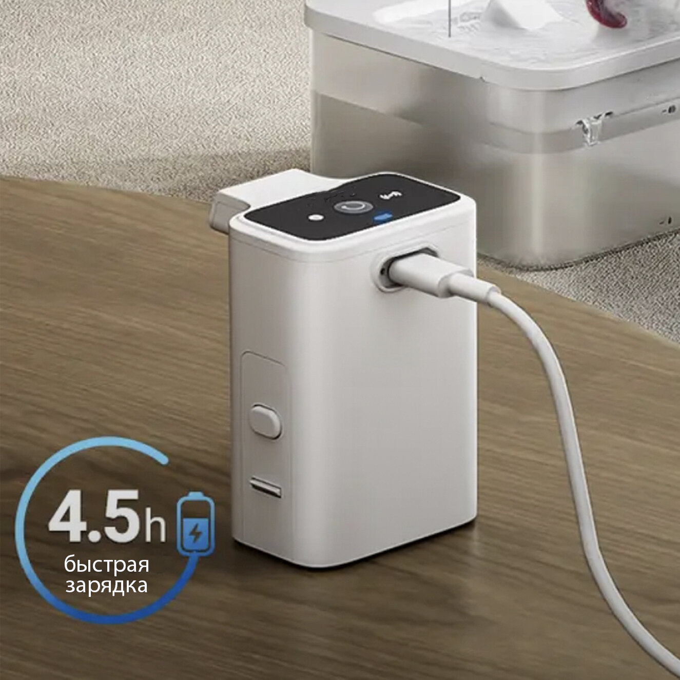 Аккумулятор сменный/запасной для беспроводной поилки имеет емкость 4000 мА⋅ч, что гарантирует продолжительное время работы. Автономная работа в режиме "Эконом" до 45 дней и режиме "Датчик движения" до 30 дней на одном заряде. Время зарядки аккумулятора составляет 6 часов.