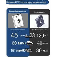 Поддерживает непрерывную запись до 130 протестировано в лабораторных условиях при температуре 25°C при записи видео 1080p/30 кадров в секунду с отключенной EIS и выключенными экранами.