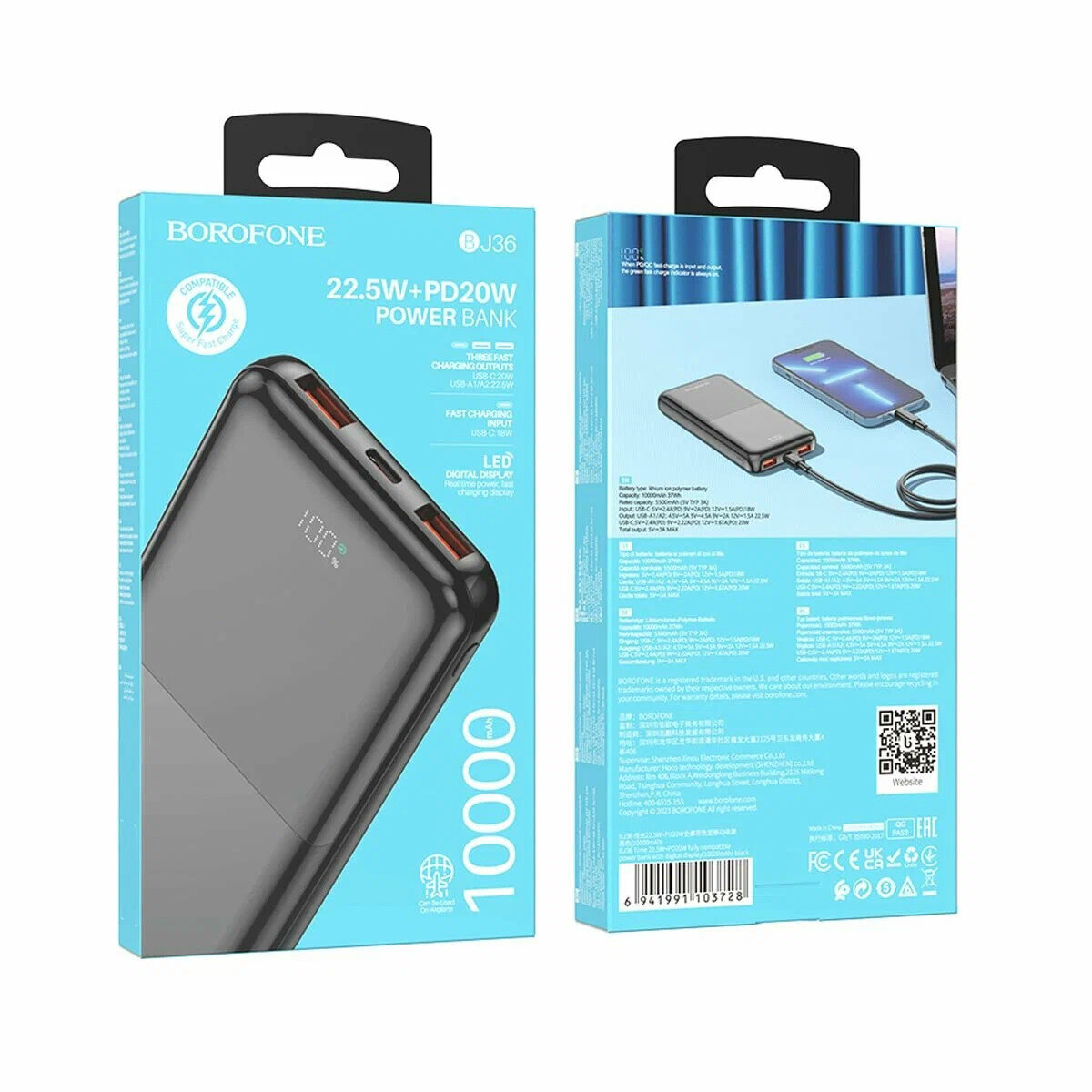 Аккумулятор внешний BOROFONE BJ36 Time, 10000mAh, пластик, дисплей, 2 USB выхода, Type-C, QC3.0, PD, 3.0A, цвет: чёрный (1/56) [6941991103735]: сравнение цен, характеристики, фото, актуальное наличие и цены.