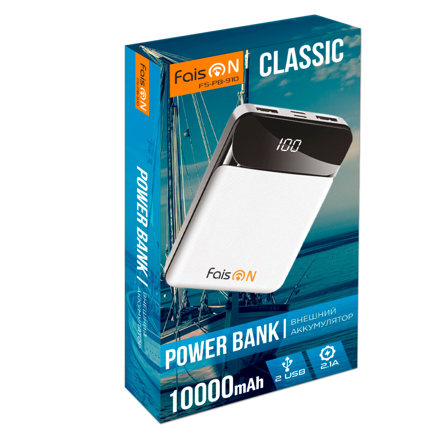Аккумулятор внешний FaisON FS-PB-910 Plus, Classic, 10000mAh, цвет: белый: сравнение цен, характеристики, фото, актуальное наличие и цены.