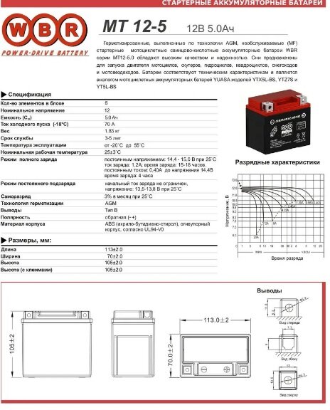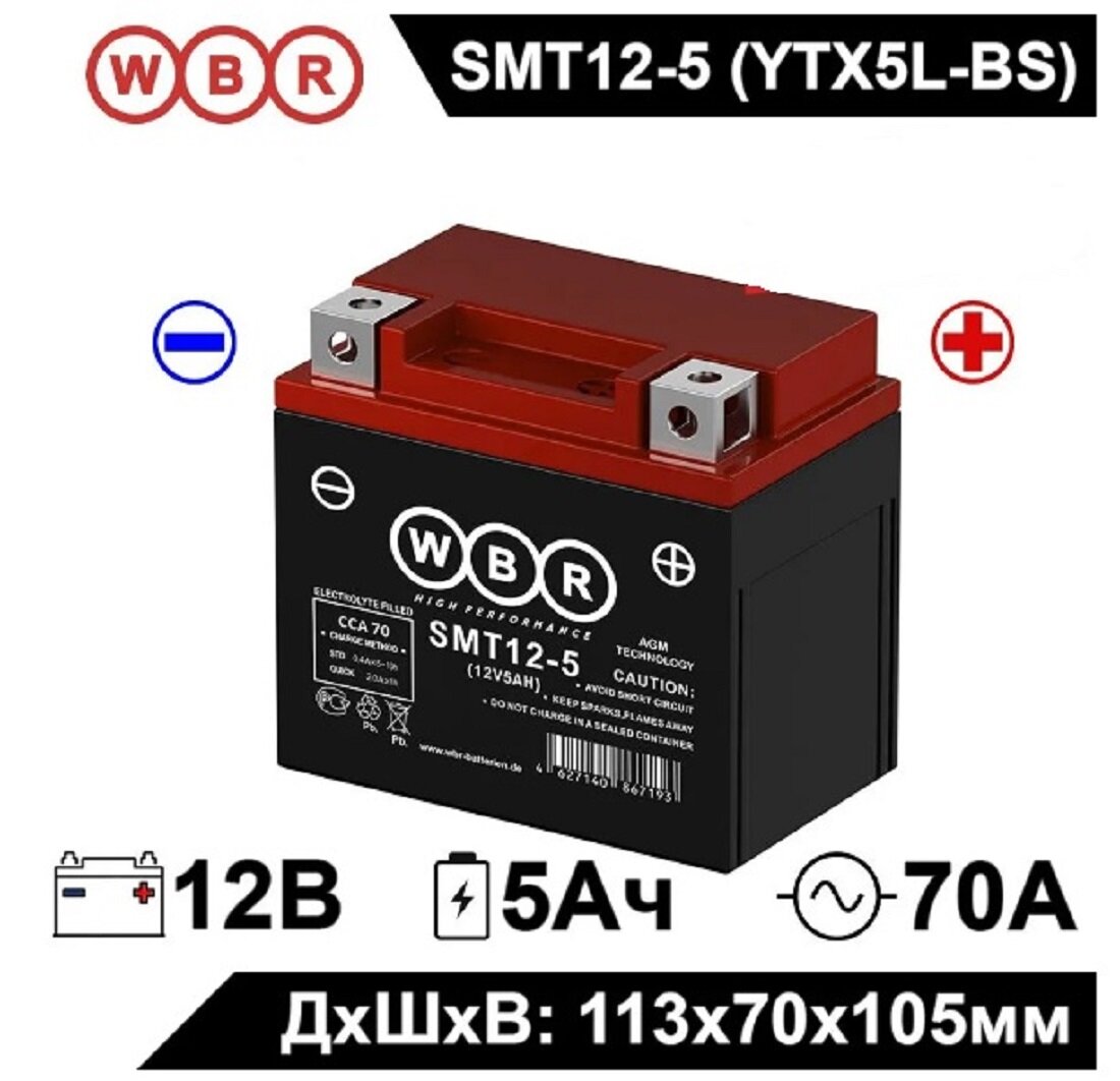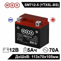 Аккумулятор WBR 5Ah 12V 70A 113x70x105 (SMT12-5) YTX5L-BS мотоцикл / скутер / мопед / квадроцикл / багги: сравнение цен, характеристики, фото, актуальное наличие и цены.