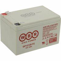 Аккумулятор для ИБП WBR GP 12120 F2 (12В 12 Ач/12V 12 Ah) — необслуживаемый герметизированный аккумулятор с номинальной емкостью 12 Ач и напряжением 12В выполненный по технологии AGM.