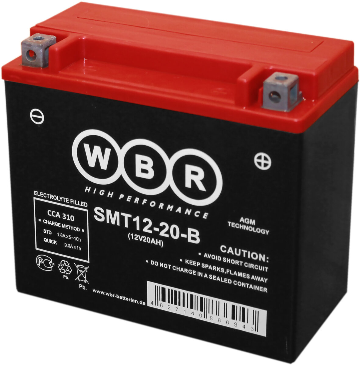 Аккумулятор WBR SMT 12-20B для мототехники (12В, 20Ач /старт. ток 270А)YTX20L-BS, YTX20HL-BS, YB16L-B, YB18L-A: сравнение цен, характеристики, фото, актуальное наличие и цены.
