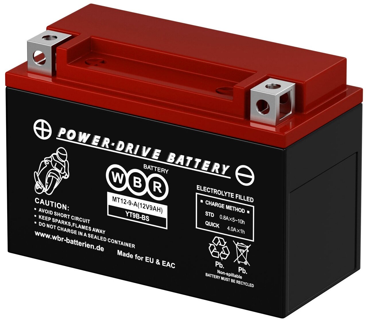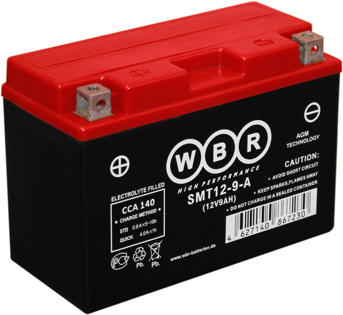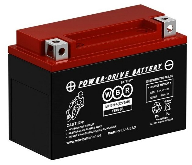 Купить Аккумулятор WBR SMT 12-9-A для мототехники (12В, 9Ач / 12V, 9Ah / стартерный ток 140А) YT9B-BS с доставкой по всей России.